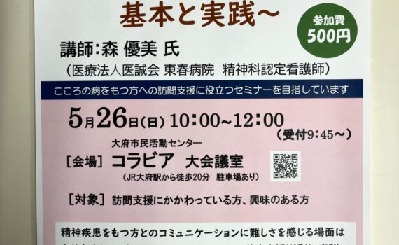 ワンポイントセミナー開催します。 こころの病を持つ方との接し方を考える ~コミュニケーションの基本と […]