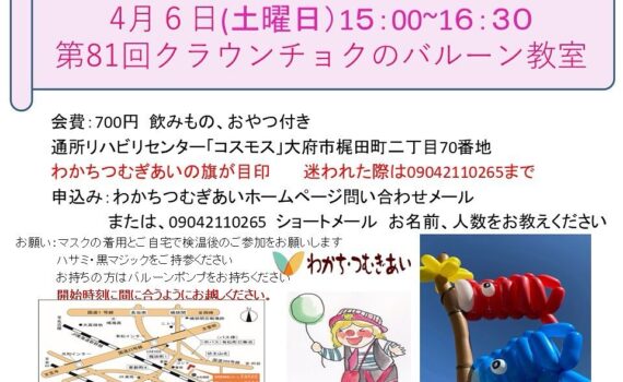 クラウンチョクのバルーン教室お申し込みお待ちしてます。 #大府市#バルーン教室#わかちつむぎあい#ク […]