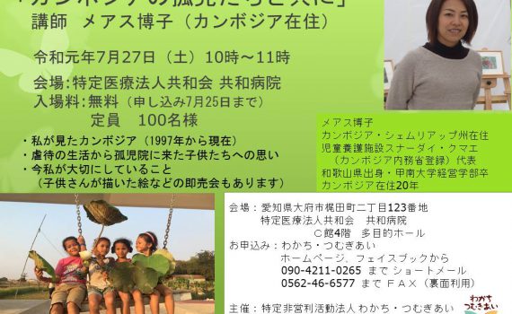 カンボジアの孤児たちと共に 講師:メアス博子(カンボジア在住) 開催日時:2019年7月27日(土) […]