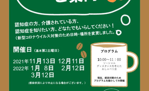 認知症の方、介護されている方、 認知症を知りたい方、どなたでもいらしてください! ■マスク着用をお願 […]