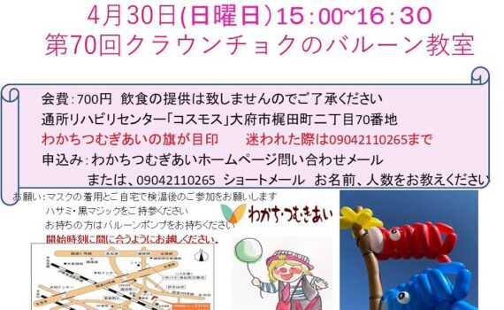 4月1日11時50分から大池公園桜祭り屋外ステージにてバルーンショーお待ちしています#わかちつむぎあ […] 地域貢献活動 4月1日11時50分から大池公園桜祭り屋外ステージにてバルーンショーお待ちしています