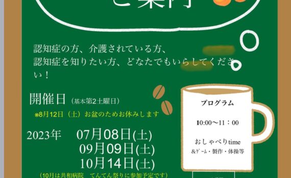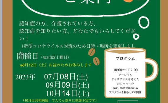 7月以降のあんずカフェ予定です(修正があります。開催日等には変更がありません。) #認知症カフェ#大 […] 地域貢献活動 7月以降のあんずカフェ予定です(修正があります。開催日等には変更がありません。)