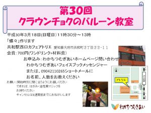 開始時刻に間に合うようにお越しくださいできれば、はさみ・油性黒マジックをお持ちくださいキャンセルは1週間前までにおねがいします。