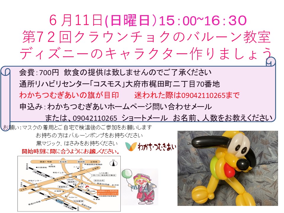 10月22日(日)16時からカフェこもれびでにてバルーン教室を行います。