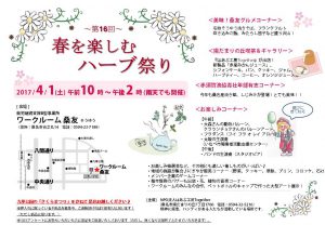 地域貢献 平成29年4月1日クラウンチョクがワークルーム桑友のハーブ祭りに参加します。 by tsumugiai_hirayama|Published 2017-03-29 イベント詳細 日付: 2017-04-01 10:00 – 14:00 カテゴリ: 地域貢献 平成29年4月1日クラウンチョクがワークルーム桑友のハーブ祭りに参加します。