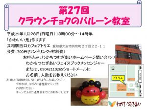 開始時刻に間に合うようにお越しくださいできれば、はさみ・油性黒マジックをお持ちくださいキャンセルは1週間前までにおねがいします。