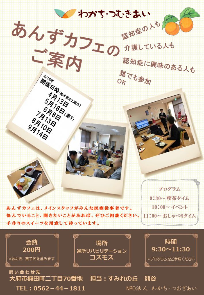 あんずカフェは認知症の方、介護しておられる方、認知症に興味のある方が参加できる場です。