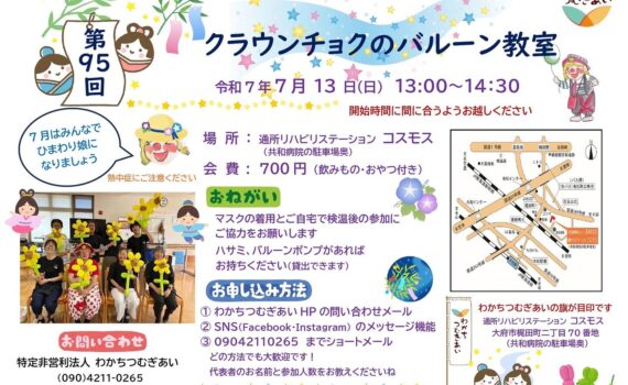 楽しく、美味しいバルーン教室終了️岡崎からもお越しくださり賑やかでした。ひまわりのように明るく元気に […] 楽しく、美味しいバルーン教室終了️岡崎からもお越しくださり賑やかでした。ひまわりのように明るく元気に夏を過ごしましょう️#ひまわり#バルーン教室#クラウンチョク#元気#おやつも美味しい